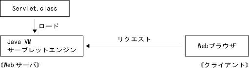 (5)Javaサーブレット Javaサーブレットは,サン・マイクロシステムズが提供するJava Web Server上で動作するプログラムモジュール(サーブレット)です.JavaアプレットやJavaScriptと対照的にクライアント(ブラウザ)にプログラムをダウンロードせず,サーバサイドJavaScriptのようにサーバ側でプログラムを実行します.しかも,サーブレットはCGIとは異なり,プロセスではなく,スレッドとして起動されます.スレッドのほうがメモリ消費量が少なくてすむので,サーブレットではリソースを効率的に利用できます. サーブレットもCGIと同様にHTMLファイルのFORMタグでサーブレットがあるURLを指定するか,もしくはservletタグを使って指定して,サーブレットプログラムを起動します.以下の例に示すように,両者とも,Javaの.classファイル(バイトコード)をサーブレットエンジンが稼働しているサーバで実行します(図1.2).