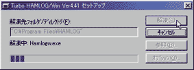 7 解凍中と出るのは,一時的にコンパクトにしてあったハムログの元ファイルをHDDに元の大きさのファイルに戻して(解凍して)いるからだ.この作業はあっという間に終わるはずだ.
