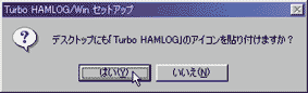 8 デスクトップすなわちWindowsの画面にハムログのアイコンを貼り付けるかどうかの問い合わせ.よく使うソフトなら,貼り付けたほうが便利だ.