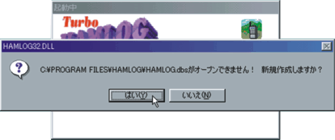 11 セットアップ後,初めての起動の場合,HAMLOG.dbsがオープンできないので新規に作りますか?と聞いてくる.ここでは「はい」のボタンを押す.