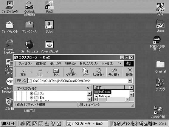 Visual C++ 1.51を起動した後,MD2.MAKを開いてビルドします.あるいは,Visual C++をインストールしたときに,*.MAKが関連づけられるので,MD2.MAKをダブルクリックして,Visual C++を起動する方法もあります(注1-9).