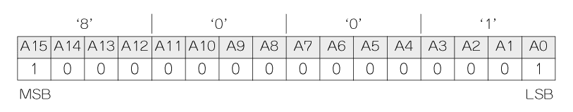 4005H番地をアクセスするときのアドレス・バスは,表1-1の状態になっています