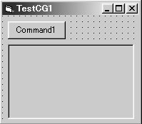 フォーム上にコントロールを組み込む方法として,次の二つの方法があります. (1) ツールボックスのコントロールをダブルクリックすると,フォームの中央にそのコントロールが配置される.適当な位置へ移動し,大きさも整えて使用する. (2) ツールボックスのコントロールを一度クリックして選択する.フォーム上にマウスを移動し適当な位置でクリックし,左ボタンを押したまま右下にドラッグする. 以上のいずれかの方法で,図1.2に示すようにフォーム上にピクチャーボックスを一つ,コマンドボタンを一つ用意します.オブジェクト名はデフォルトのPicture1,Command1としておきます.