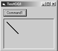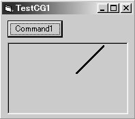 通常,われわれが数学で使用するデカルト座標(論理座標ともいう)は,x軸は右に向かって増え,y軸は上に向かって増えます. ところが,Windows画面の座標系はy軸の正方向が下向きになっています.ピクチャーボックスもデフォルトではこのような座標系であり,しかも左上の角の点が原点です.このような座標を物理座標といいます. では,座標点(10, 10)から座標点(50, 50)に直線を描いてみましょう.リスト1.2をリスト1.4のように変更して実行してみてください.