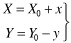 一般に,物理座標系におけるデカルト座標の原点を(X0, Y0)とすると,デカルト座標値(x, y)に対する物理座標系の座標値(X, Y)は,