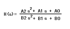 分母が二次式、複素数、実数部が正の例。(極=0.1+j1.0, 0.1-j1.0)。プルダウンメニューにより、極の配置、周波数特性がチェック出来ます。数学的解析は