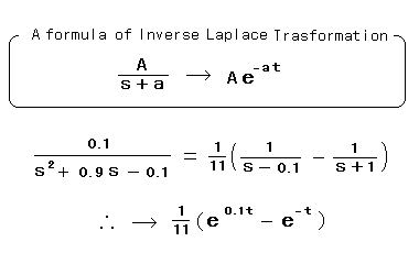 伝達関数をラプラス逆変換し、インパルス応答を求めます。以下のように無限大に発散します。