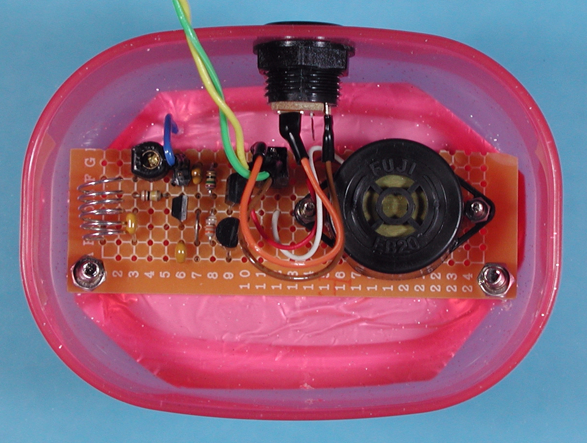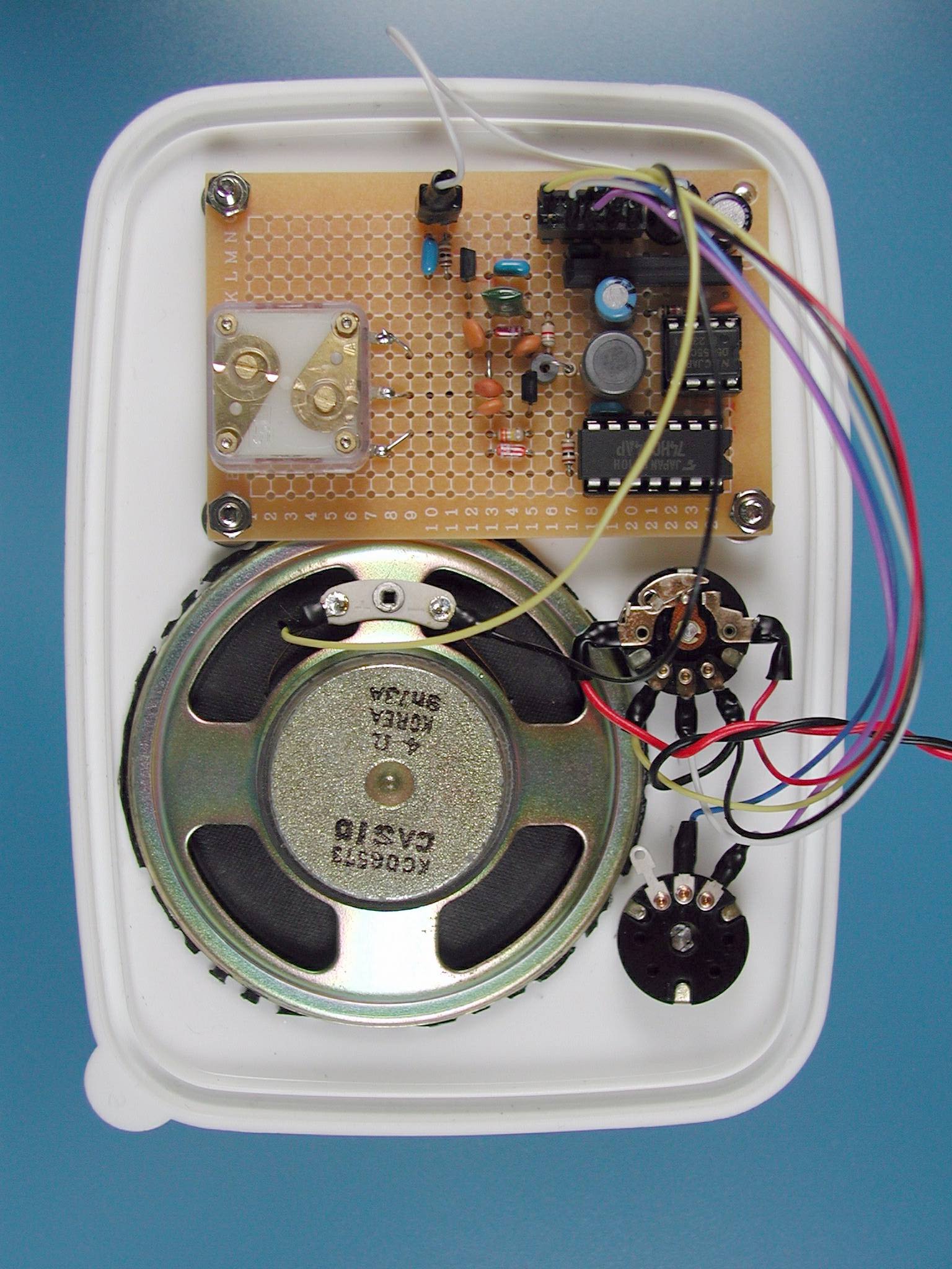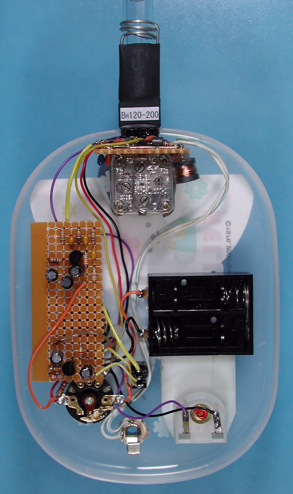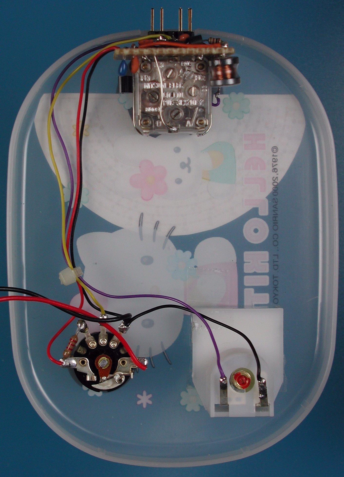 鉱石ラジオ・キット内に基板を組み込んだようす