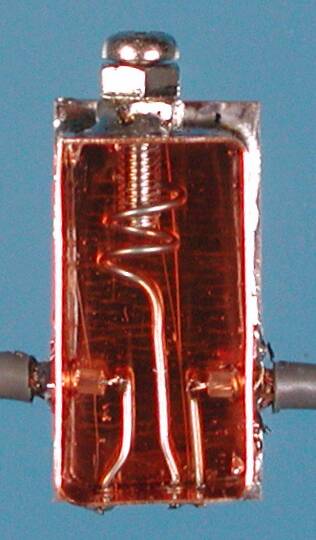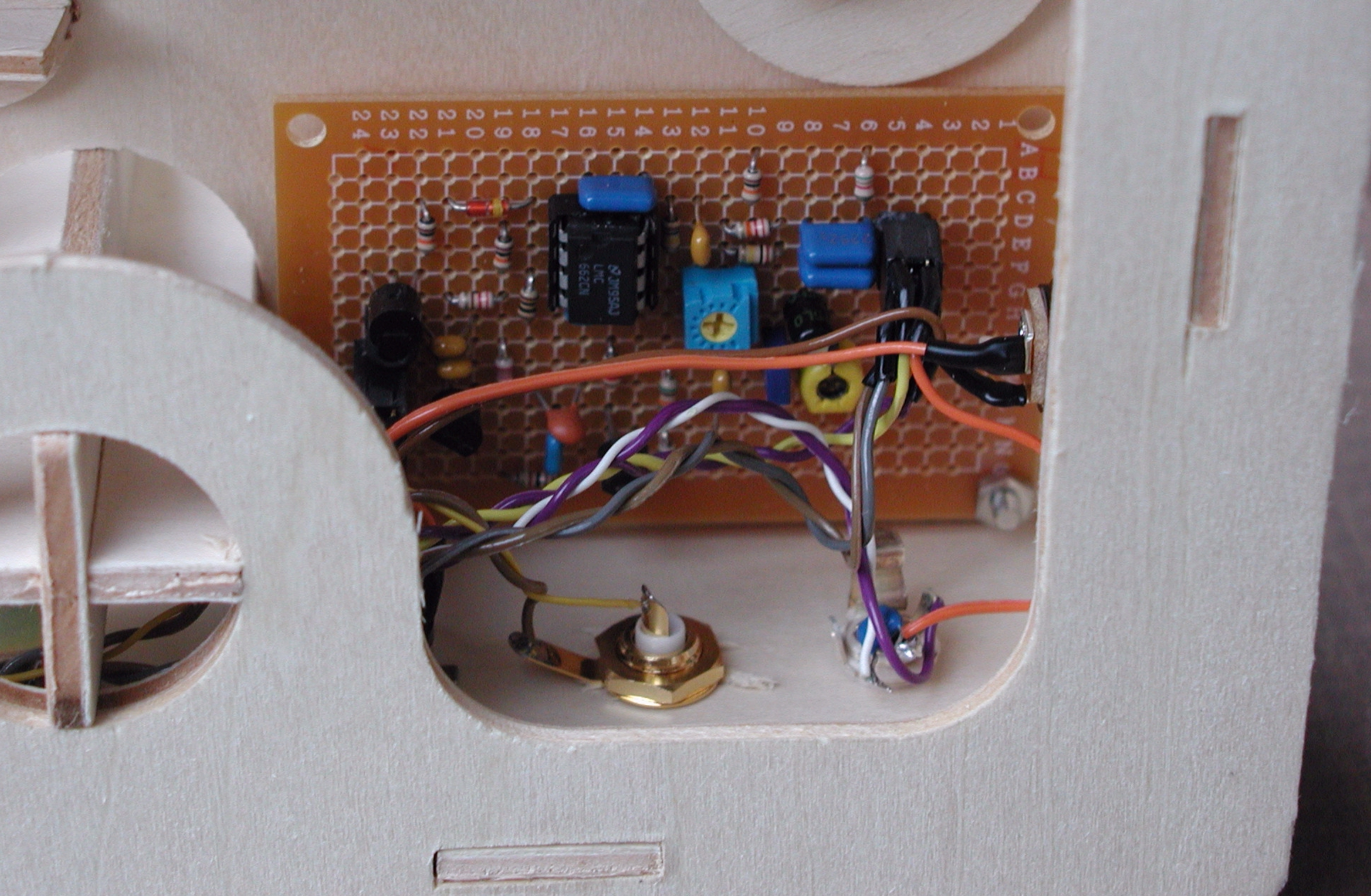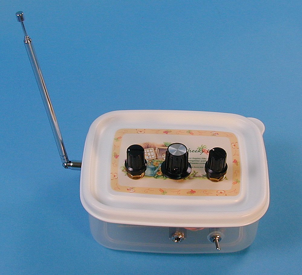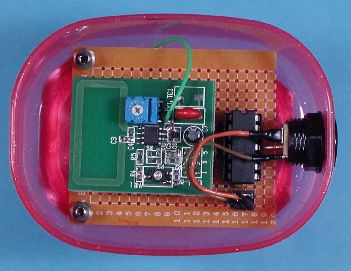 鉱石ラジオ・キット内に基板を組み込んだようす