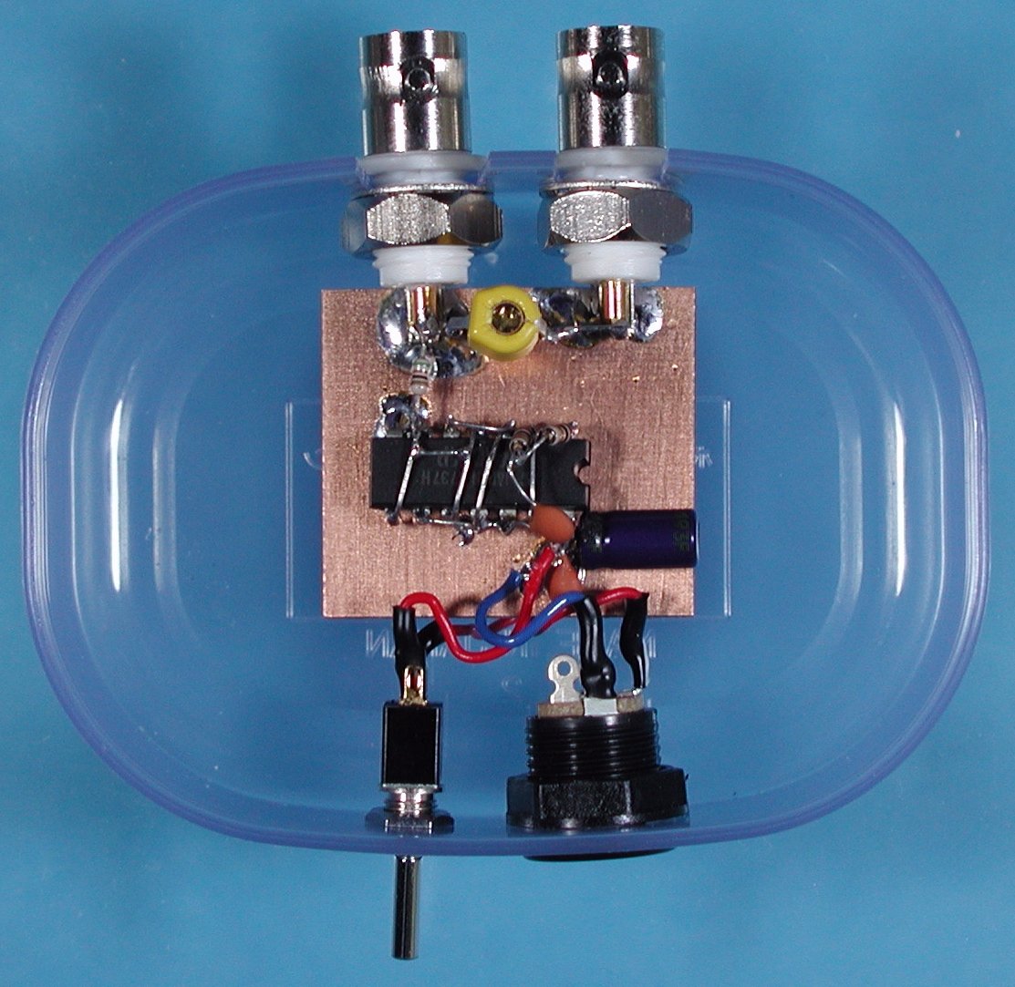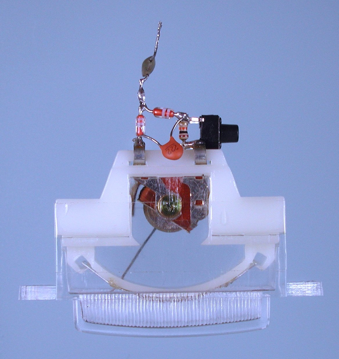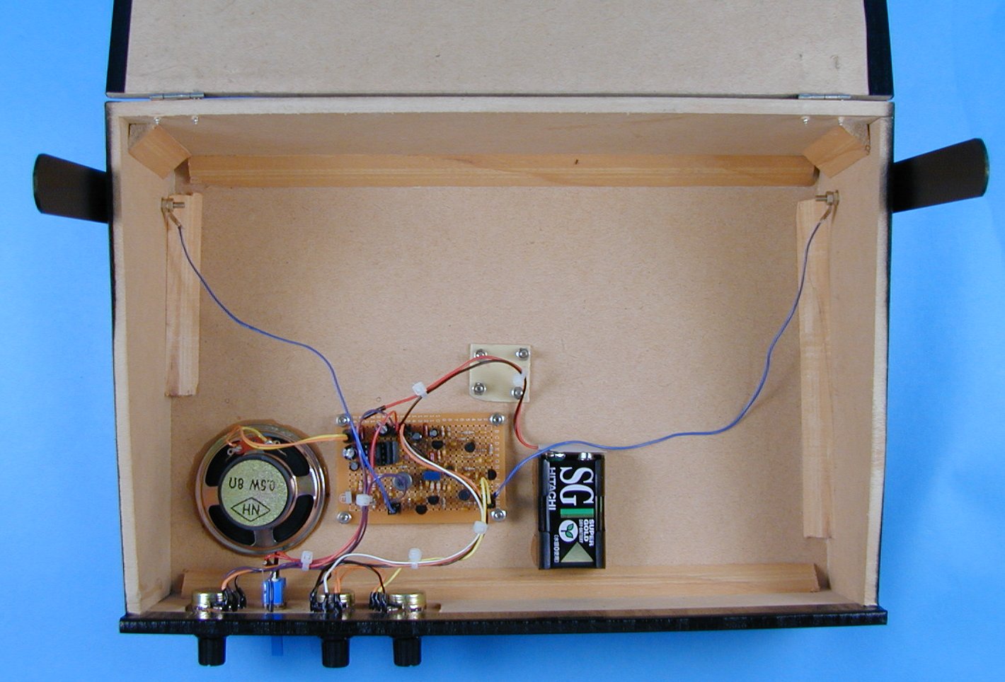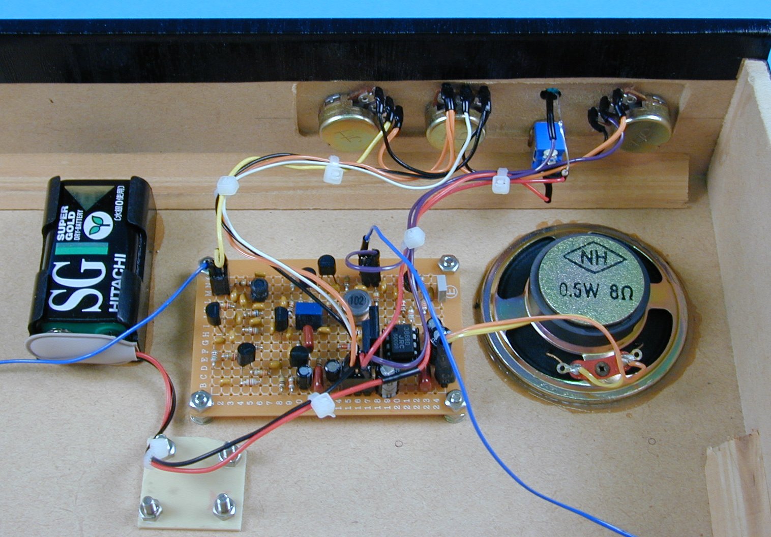 鉱石ラジオ・キット内に基板を組み込んだようす
