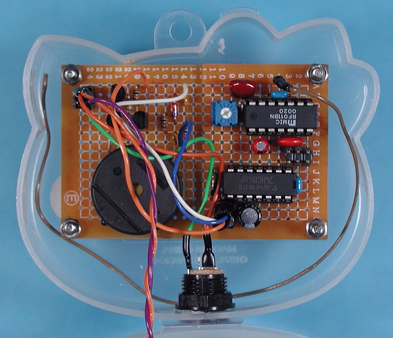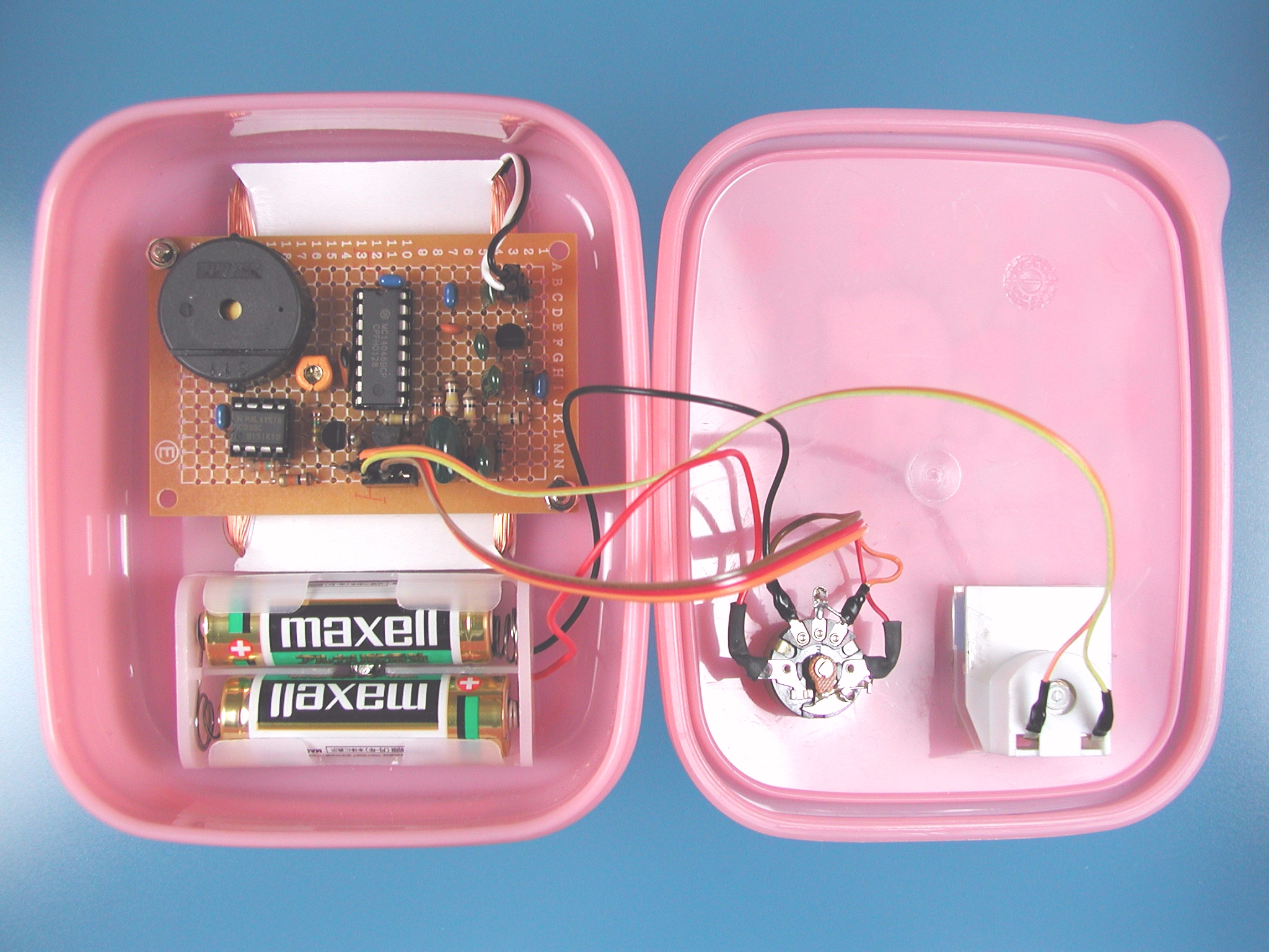 製作した防犯用近接リレー(その2;上:受信部,下:送信部)