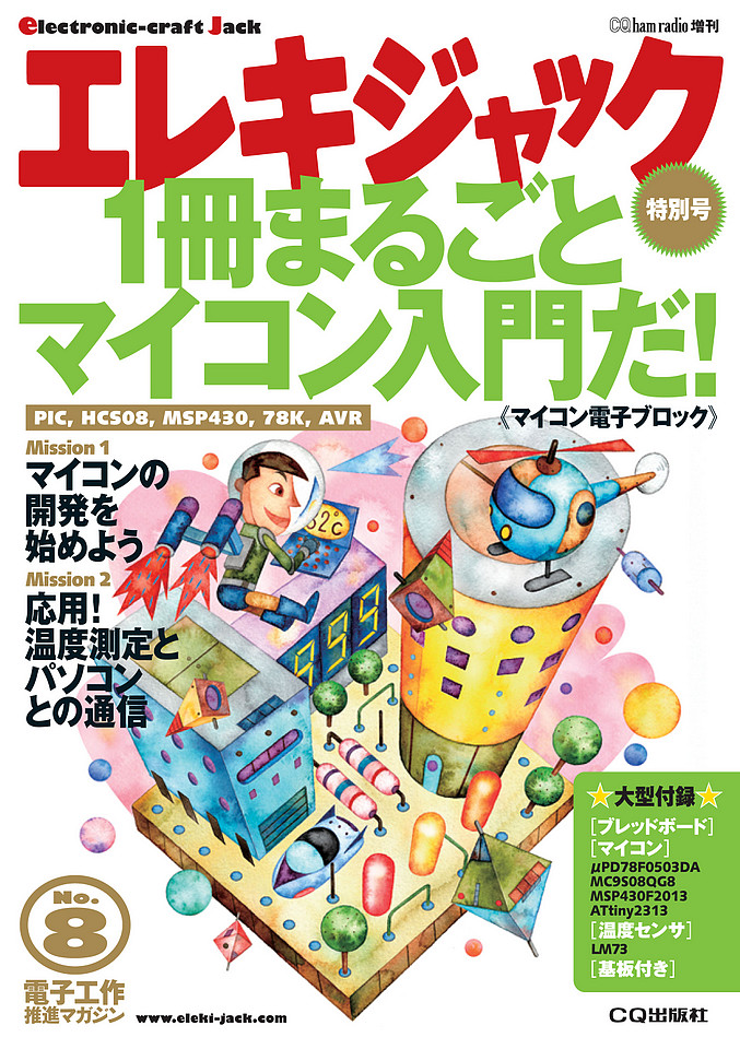 マイコンのアプリケーション開発のための特別号です.取り上げるマイコンは編集部が選んだ入門用として最適な5種類で,そのうち4種類が付録に付いています.付録のブレッドボードの上で回路を組んでいくことができるので,はんだ付けの作業をすることなく,手軽に開発の勉強ができます(一部を除く).